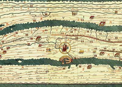 A Tabula Peutingeriana é a única representação conhecida do cursus publicus, o percurso de transporte e correio ao serviço do Império Romano. Composta por 12 partes de 34cm de altura por 59 a 65cm de largura cada, as partes organizam-se num mapa linear com um total de 6,82m em toda a sua extensão. O mapa retrata a área de influência do Império Romano — desde a África do Norte, passando pela Europa até ao Médio Oriente, Pérsia e Índia, e serviria como um guia para o viajante, revelando-lhe onde podia ir, que estrada percorrer, por que ponto se referenciar, onde repousar e por onde prosseguir.