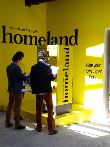 A representação nacional, com a curadoria de Pedro Campos Costa, é também este ano assunto de conversa. A participação é feita pela publicação de um jornal, em três edições, durante os seis meses da Bienal. Focando-se na temática da habitação, sujeito principal da experiência modernista em Portugal, o jornal reportará ainda o desenvolvimento de seis projectos por seis grupos de arquitectos portugueses, em seis cidades diferentes e que lidam com seis diferentes modos de habitar.