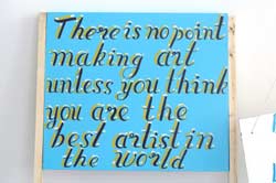 Em paralelo às peças off-site , a galeria Peer exibiu novos trabalhos do Bob and Roberta Smith. Textos pintados em painéis de madeira, mostram reflexões em tom provocativo There is no point in making art unless you think you are the best artist in the world / Não faz sentido fazer arte a menos que te consideres o melhor artista do mundo. Estes textos funcionam, segundo a Directora do Peer, Ingrid Swenson, como “proclamações políticas, slogans revolucionários, gritos contra o elitismo do mundo da arte e são apenas jogo com o absurdo”. Os painéis lembram o tipo de cartazes usado em manifestações, mas também cartazes publicitários, em particular os de lojas de comércio tradicional que são feitos diariamente por comerciantes anónimos e que podem ser vistos com um desenho meticuloso por toda a cidade. Londres é singular na tradição de cartazes deste tipo, pelo cuidado tanto ortográfico como pela qualidade visual. Assim, estes painéis, apresentados no Peer, têm um estatuto deliberadamente ambíguo, referindo-se tanto a progresso como a exploração social.