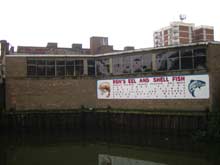 O artista não escolheu a localização das peças. Foram indicados pelo Council , à excepção do que se encontra no canal, que estava livre e é, sem dúvida, perfeito para a peça que anuncia a caravana de peixe do Mr. Ron. O canal é ladeado de edifícios baixos, não ao estilo victoriano, mas de tijolo de uma grande riqueza de tonalidades de castanho. O edifício que alberga a publicidade é um armazém abandonado, de vidros partidos que deixam ver fios de electricidade soltos de dentro. No canal, a publicidade em estilo old school, pintada à mão, aparece-nos reflectida, com o peixe meticulosamente desenhado agora distorcido, como que debaixo de água. Todas as peças ficarão nos locais por um ano, excepto esta que ficará até que surja um projecto de renovação do edifício.