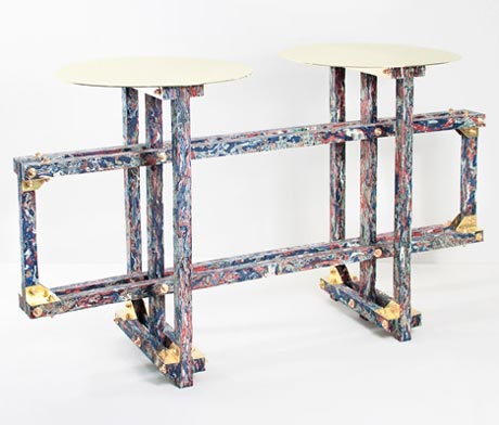 “Structural Skin” de Jorge Penadés, compreende duas mesas feitas a partir de restos de pele, aglomerados em bastões multicoloridos, com junções e tampos em pele polida. Inspirado pelas estatísticas que dizem que apenas 13% da pele do animal é usada pela moda, mobiliário, calçado e indústria automóvel, Penadés procurou um uso para o que sobrava.