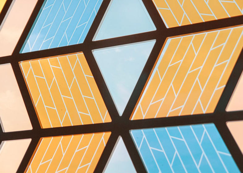 “Current Window” de Marjan van Aubel, que usa uma camada de células solares para converter a luz solar em energia eléctrica que pode ser usada para carregar dispositivos, está incluída na exposição ao lado de “Ocean Cleanup”, de Boyan Slat, que pretende eliminar plástico dos mares.
