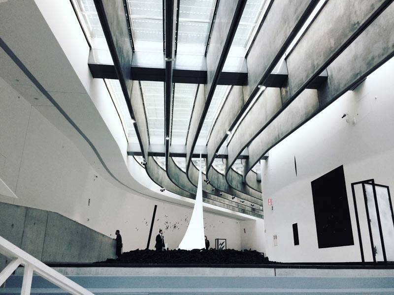 Contam-se 360 degraus ao longo de toda a estrutura labiríntica, na qual, percorrendo e apreendendo o espaço, se torna clara a complexidade da criação de Zaha Hadid. A particularidade de toda a estrutura é ainda impulsionada pela inserção de alguns outros elementos, tais como a obra de Anish Kapoor (img.3), no rés-do-chão, intitulada Widow e concebida em 2004 propositadamente para esta área. A interação deste objeto de grande dimensão com o espaço envolvente aumenta o impacto no espetador e, como é explicado no texto que apresenta a obra, provoca uma experiência visual, espacial e física, sendo isso mesmo, na verdade, o que ocorre por todo o museu.