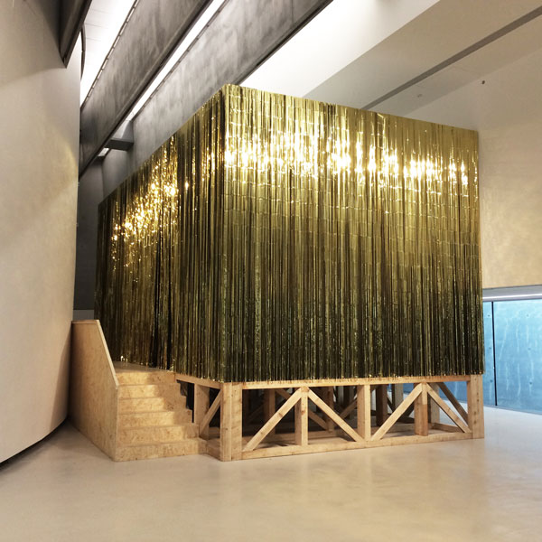 Com efeito, a arquitetura engenhosa e arrojada de Hadid possibilitou uma visita muito singular a todas as exposições que se realizem no museu, como é o caso das atuais temporárias, uma de fotografia representativa de Itália e uma projeção imagética da artista paquistanesa Shahzia Sikander. Também na mostra do Prémio MAXXI 2016, na galeria 3, verifica-se um estratégico uso do edifício e uma forte interação com este através de obras site specifics, grandes instalações muito singulares que habitam o espaço e se alimentam dele, como se verifica claramente na obra de Riccardo Arena (img.5), que parece romper e nascer do chão. Composta, composta por vários elementos brancos e pretos, a peça parte do pensamento do cosmism, um movimento filosófico que, na Rússia do séc. XIX, teorizou a capacidade do homem dominar as forças naturais. Intitulada Orient 1, diverge esteticamente de uma outra, dourada, que se exibe apenas a uns metros de distância, da autoria do grupo de artistas Zapruder. Com o nome de Zeus Machine (img.6), o grande objeto é, na verdade, o espaço de projeção de um vídeo que procura refletir sobre a sociedade moderna através da conjugação do místico e da realidade política de diferentes tempos e espaços.