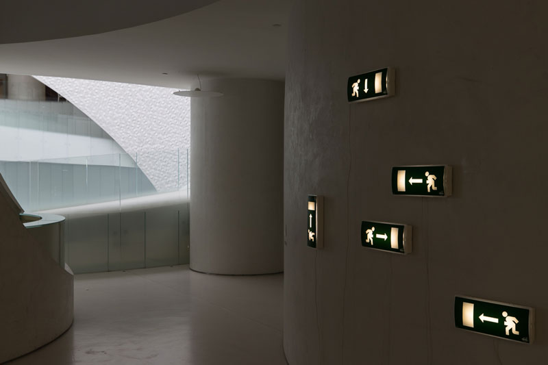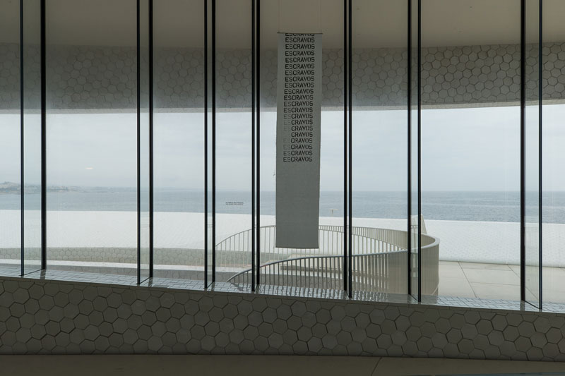 Da autoria do arquiteto Luís Pedro Silva, constatamos tratar-se de uma construção complexa e singular. Apresenta-se como um espaço amplo, despojado e, como se observa noutros projetos do mesmo arquiteto, parte de uma concepção e geometria contemporâneas que criam uma relação de proximidade e harmonia com o ambiente natural em redor. Neste caso, é particularmente interessante que parte das paredes da estrutura sejam cobertas por uma textura de azulejos brancos em escamas à semelhança dos peixes. Assim, o terminal constitui, para o público, um desafio de o percorrer e contemplar, algo que se intensifica exponencialmente perante a perspetiva da concretização de uma exposição de arte. Os predominantes tons de branco e cinza compõem também uma tela convidativa ao artista que for capaz de lhes responder e aí intervir. Ora, Miguel von Hafe Pérez está, sem dúvida, apto para tal exercício, com uma visão curatorial tão surpreendente e atual quanto as obras de arte mais contemporâneas.