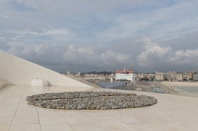 Como Miguel von Hafe Pérez afirma, a arte pode servir para ver as coisas de uma nova perspetiva. Na obra de Denis Oppenheim, Posto de visionamento (1967), com efeito, encontramos uma estrutura através da qual podemos observar a paisagem exterior, sendo esta uma das obras que, em conjunto com o edifício, nos oferece uma maior experiência física, visual e perceptiva. Nessa mesma medida anuncia-se a obra de Richard Long, Earth Circle (2001), a única disposta no terraço do terminal. Composta por um elemento natural, o granito, aproxima-se do ambiente que a circunda e oferece uma nova óptica sobre a arte e, claro, o azul do céu, da água e da praia de Matosinhos. A paisagem, já por si só magnífica, ganha com este elemento que com ela entra em diálogo, uma nova vida e dinâmica.