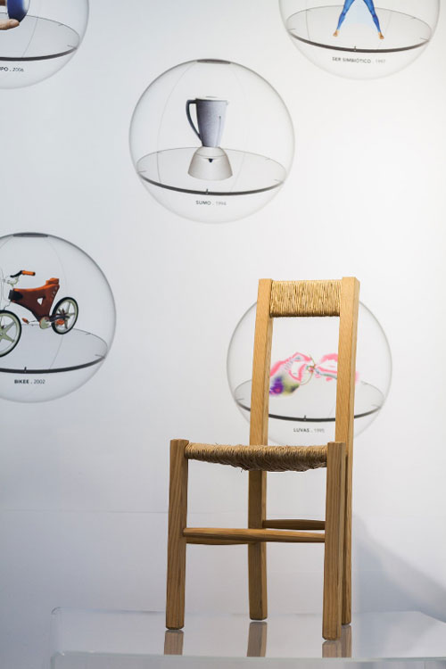 As peças jorram na exposição, do mesmo modo como as memórias despertam. O “Pedalinho”, desenhado em 1994, evoca o conceito de objecto feito, na integra, de uma única peça., ou a cadeira M, de 1990, que desperta a reflexão sobre os modos de sentar; também os últimos trabalhos sobre cortiça estão presentes na exposição. Denunciam uma preocupação no tema do autóctone, no impacto ambiental, sempre presente nas preocupações do designer.