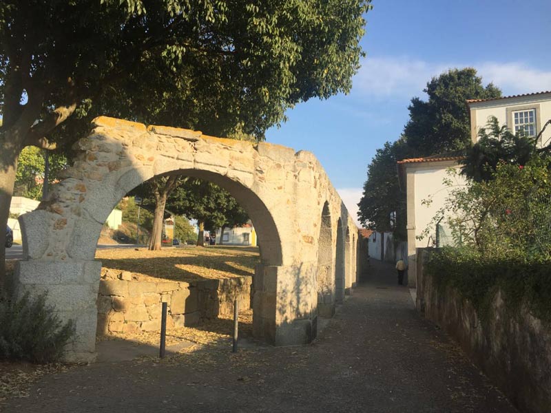 Os únicos vestígios existentes do aqueduto, são os da rua Montebelo[19] e os que se encontram à frente do frontispício que resta do Paço Abacial, intramuros do castelo, ou forte de São João Baptista.