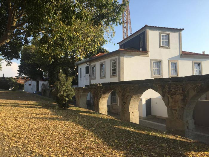 [19] É mesmo neste encontro da rua Montebelo com a rua do Padre Luís Cabral que verificamos o corte do aqueduto ainda virado para o alto da rua do Padre Luís Cabral (entre a Quinta do Monte e a antiga Quinta da Pasteleira) cortada pela “Estrada Nova”, ou rua de Diogo Botelho, no século XX. O aqueduto terá desaparecido, aquando do projeto de alinhamento e alargamento da rua dos Olivais e outras da Foz, desde a Cantareira à rua Central, em meados do século XIX.