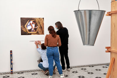 Montagem da exposição AEIOU: Os Espacialistas em pro(ex)cesso. Fotografia: Victor Garcia, cortesia Colégio das Artes.