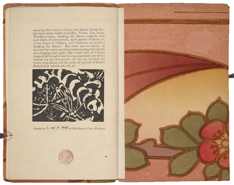 A prática da encadernação foi o primeiro passo que levou Virginia Woolf ao encontro do livro como objeto, o que provavelmente culminou, mais tarde, no desejo de participar integralmente das etapas do processo de publicar. Uma vez com a Hogarth Press em atividade, mergulhada nesse novo ofício, ela passou, além de exercitar as técnicas de encadernação que havia anteriormente aprendido, a sujar as próprias mãos de tinta e a sentir o peso de chumbo das palavras. É especialmente interessante perceber como essa experiência com a materialidade do texto passou a influenciar diretamente a sua escrita. A construção de frases, o uso da pontuação e a escolha de palavras tornaram-se um jogo visual de experimentação da forma concreta, como ela mesma descreve: