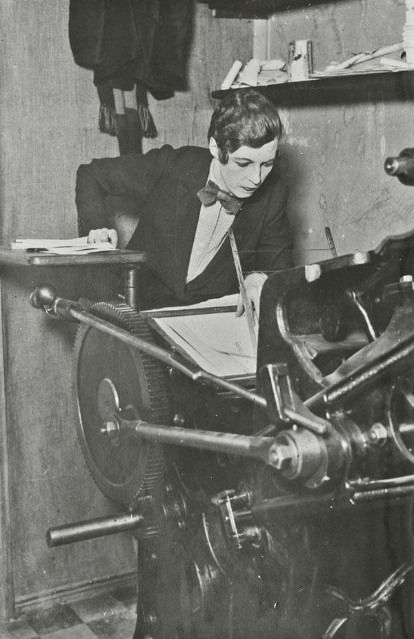 Já Nancy Cunard (1896-1965), escritora romancista e ativista política antifascista de origem britânica, que passou diferentes períodos da vida entre a Inglaterra e a França, resolveu empreender sozinha essa aventura, sendo idealizadora da Hours Press. Pouco mais que dois anos após ter o seu livro-poema Parallax publicado, em 1925, pela Hogarth Press, Cunard decidiu seguir o conselho e os passos de Virginia Woolf e Leonard Woolf, com quem mantinha contato e admiração. Segundo Benstock (1986), ela escreve em seu livro These Were the Hours [1], que ao contar para os Woolfs sobre a sua decisão eles exclamaram: “Your hands will always be covered with ink!” Vê-se que logo tomou gosto pela sensação, pois na passagem seguinte reitera: “the smell of printer’s ink pleased me greatly, as did the beautiful freshness of the glistening pigment”.