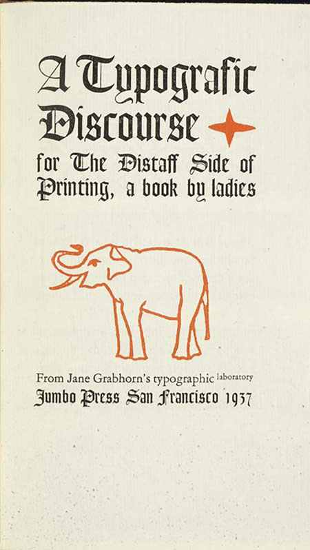 Entre os títulos publicados pela Jumbo, é possível citar: A Guide & Handbook for Amateurs of Printing, no qual Jane Grabhorn desfaz mitos que envolvem o universo do fine press printing ao afirmar que imprimir pode ser tão fácil o quanto se desejar que seja; e o A Typografic Discourse for The Distaff Side of Printing: A Book by Ladies [3], no qual ela revelou, entre outros, o seu desdém pela quebra convencional de palavras na composição com tipos móveis.