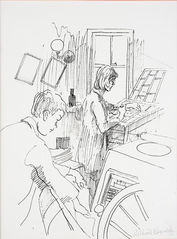 Virginia e Leonard Woolf desenhados com tinta e grafite por Richard Kennedy.