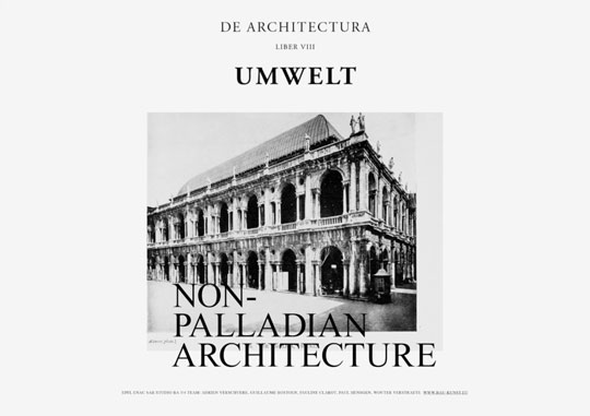 Hoje, com a devida distância, compreendemos que (para além de informação útil e objectiva) este layout fornecia a quem visitava o site um duplo enunciado, resumindo tanto a posição do arquitecto sobre a produção do escritório como a sua posição relativamente à disciplina da arquitectura. Por um lado, declarando que os detritos acumulados pela história são uma matéria-prima privilegiada para o pensamento arquitectónico. Por outro lado, de forma latente, demonstrando que a arquitectura é um processo de produção surgido de e em relação com o mundo material, que simultaneamente o supera e inclui.