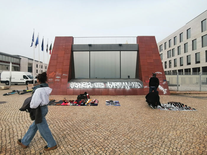Esta janela da EMSA tornou-se então ainda mais ecrã: uma janela sem olhar. Uma mera superfície de reflexão, polida, que não oferece resistência, como os ecrãs dos nossos mais recentes dispositivos, ditos tácteis. Melhor: tão polida que escorregamos se nela o nosso olhar se fizer corpóreo e ali intentar permanecer. Este pequeno espaço está por isso pichado, falicamente, com tags vários. Na tentativa de penetrar o desconhecido, também muitas investigações académicas se autoreduzem a termos cunhados. Não será este um sintoma do nosso tempo, em termos lacanianos, com diferentes expressões? Os navios afundam-se, e como no mito de Narciso os homens afogam-se na sua imagem, no tal anel interminável do eu. O mesmo que dizer com Camões: água do mar em tão pequeno vaso. Deste naufrágio não pode a EMSA nos proteger. Precisamos de abrir janelas fenomenológicas para o alter-nativo – aprofundarmo-nos no que realmente se passa ao nosso redor, para não nos afundarmos em tão pequeno vaso, plantemos em pequenos vasos belos narcisos amarelos. E, digamos então a esse Outro: Eu vejo-te – despertemo-lo.