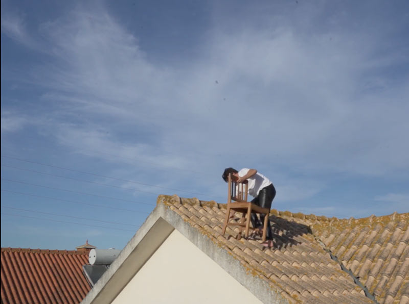 As gemas não desconhecidas mas conhecidas, são a atenção multifacetada, que vive exilada nas tais casas de penhores. O trabalho de edição e montagem do tempo, pressupõe esse encontro com o tempo vertical; ontológico. O Rafael transforma, pela montagem de planos, o movimento helicoidal do enrolar de uma bobine, numa escada de tiro (ao alvo) de/para o arq.(tecto) — re-conhece-lhe o gesto. De repente, estou no terraço da minha primeira casa, a olhar para o fumo, que como música, é exalado misteriosamente pela chaminé, junta-se às nuvens e desaparece no vasto céu — refiro-me à chaminé da tal lareira e fogo que crepita palavras que já sei o que são se não me perguntarem. Recordo a escada fixa à parede desse terraço, uma faixa de filme para o derradeiro tecto da minha primeira casa, que apenas subi, não para me instalar, mas para espreitar. Acredito estar com o Rafael, também, num jogo. Os ‘jogos de linguagem’, são, segundo Maria Filomena Molder, caros ao filósofo-arquiteto: