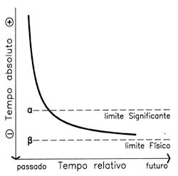 Se retomarmos de novo o território da Arquitectura, a primeira das linhas definidoras deste intervalo ( ver diagrama em anexo ), será portanto a de um hipotético limite concreto, físico, para a possibilidade de compressão no tempo da sua produção e recepção ( linha ? ). Na realidade, tal como na metáfora do fruto “natural” e do seu alter ego tecnicamente acelerado, é inevitável considerar que, embora esse limite tenda para o infinito, em algum momento a curva hiperbólica de compressão que o representa atinja um ponto que não será fisicamente possível ultrapassar.