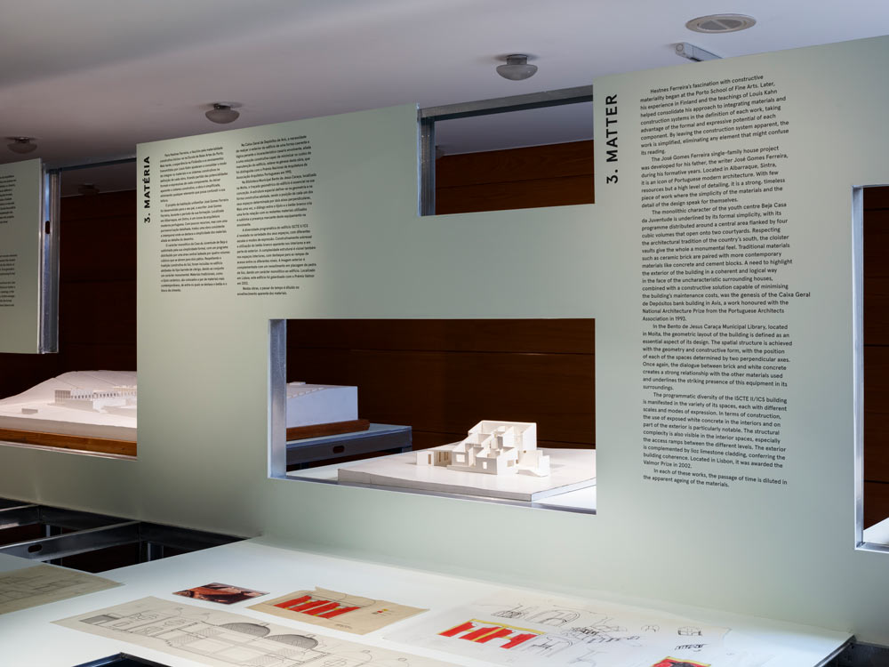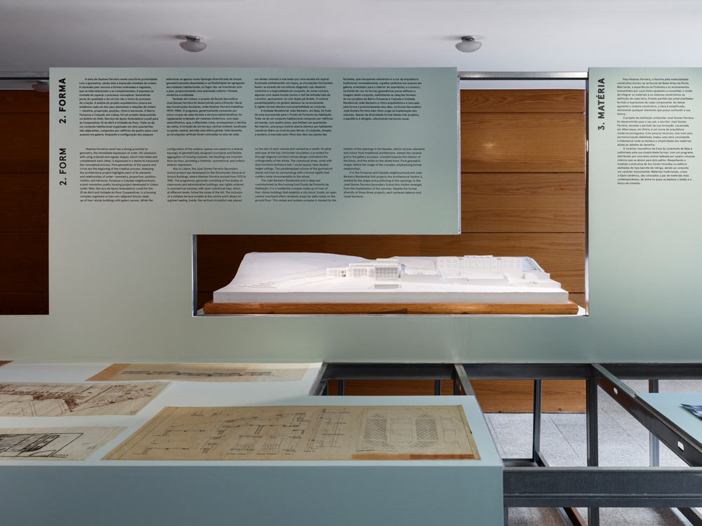 Comissariada por Alexandra Saraiva, Patrícia Bento d’Almeida e Paulo Tormenta Pinto, Hestnes Ferreira: Forma, Matéria, desenvolve-se linearmente ao longo de treze projetos, sublinhando três proposições bem presentes no pensamento do arquiteto. Três conceitos que bem poderiam estar listados entre os quinze que compõem o glossário de Rem Koolhaas, mas para o caso aglutinam sessenta anos de prática profissional, intemporal, do arquiteto que privou com Louis Kahn (1901-1974).