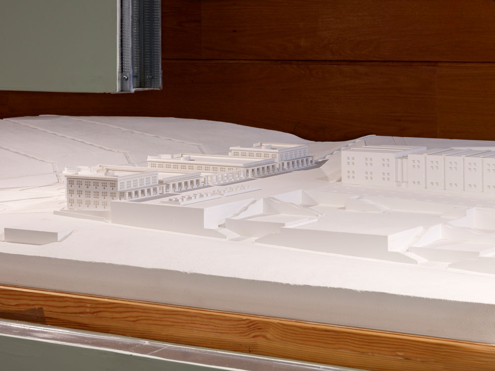 E muito embora Fundamentals não seja o foco deste texto e o recurso à referência até se mostre superficial, o pensamento de Koolhaas tem toda a pertinência para o que adiante falaremos, já que a actual exposição dedicada a Raúl Hestnes Ferreira (1931-2018) patente no MAC-CCB ocupa o espaço de um desses “fundamentos”: o corredor. O arquivo do arquitecto Hestnes Ferreira instalou-se no percurso de ligação acessível entre o piso 0 e piso -1 do museu, ou seja, na galeria de passagem para a rampa.