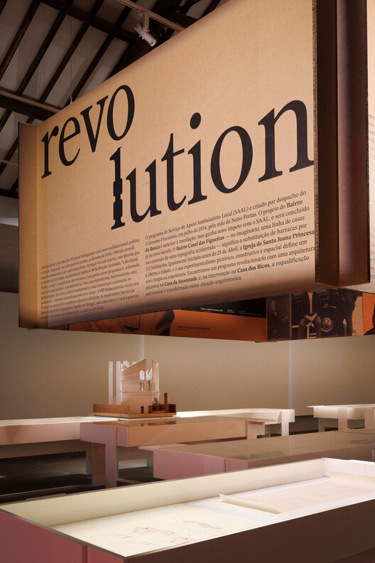 De facto, em Revolution (1974-1983), explora-se o período revolucionário — com a emergência do social — e o pós-revolucionário, marcado pela estabilização liberal. Reflectem-se novos programas públicos e outros modos de fazer arquitectura, através de projectos como o Bairro da Bouça, de Álvaro Siza, ou a Casa dos Bicos, de Manuel Vicente e José Daniel Santa-Rita. O módulo convoca ainda figuras como Agustina Bessa-Luís, Sophia de Mello Breyner ou António Variações.
