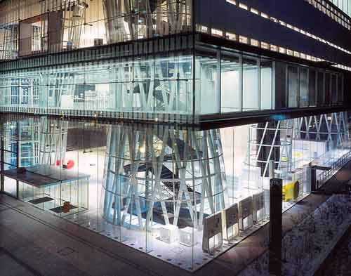 Estas novas tecnologias terão certamente igual influência na cidade e na arquitectura, dotando-as de um novo layer digital que coexistirá com a forma fÃsica. As infra-estruturas rodoviárias, fluviais e ferroviárias mudaram o território ao longo do século XVIII e XIX, do mesmo modo que os avanços tecnológicos do princÃpio do século XX, como a pré-fabricação, o betão armado ou o uso do ferro, levaram a uma nova arquitectura com novos valores estéticos. No inÃcio da revolução industrial os elementos técnicos eram dissimulados, mas foram adquirindo gradualmente uma expressão formal nos edifÃcios, que é evidente na estética modernista associada à máquina e que atingiu o paroxismo com o high-tech. Sendo assim, é natural supor que as novas tecnologias da informação mudem a paisagem contemporânea. A questão que se coloca é como é que esta “revolução†tecnológica e digital se reflectirá na arquitectura, como é que o hardware, mas principalmente a imaterialidade do software, irá ser absorvida pelos edifÃcios? É que há um claro desfasamento entre um discurso que junta espaço e informação com a realidade construÃda. A Mediateca de Sendai de Toyo Ito é paradigmática nesse aspecto. O discurso, que incide sobre a transparência, a leveza e o atravessamento da construção por fluxos de informação, é acompanhado por uma estrutura, senão convencional, pelo menos pesada, nas suas árvores metálicas. Os fluxos de informação resumem-se afinal, a comuns escadas, elevadores e clarabóias.