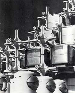 Mais tarde, no final do séc. XIX, o corpo passou a ser encarado como uma extensão mecânica das unidades de produção fabril, o seu movimento foi cientificamente estudado de modo a torná-lo numa eficiente força de trabalho. “Não demorou muito até que a prática dos corpos mecanizados das fábricas fosse aplicada aos escritórios, escolas e hospitais. Na primeira década do séc. XX, a gestão cientÃfica foi trazida para dentro de casa e aplicada no trabalho doméstico.â€(3) A ideia que está aqui subjacente é tornar o corpo numa máquina, transformar o seu movimento em algo mecanicamente eficiente. Na tecnologia abordada na última parte do texto, o pré-tensionamento orgânico, a ideia é exactamente a oposta: - utilizar a mecânica de um organismo vivo, no caso os músculos do corpo humano, para a adaptar à estrutura de edifÃcios, igualmente no sentido de a tornar mais eficiente. “Se para a primeira era da máquina a metáfora escolhida era industrial (a máquina de habitar), a segunda era da máquina privilegiou a metáfora médica: a casa simultaneamente protésica e profiláticaâ€(4) Ao invadir a casa, os electrodomésticos aumentaram as expectativas e os parâmetros de limpeza para nÃveis compulsivos. “A descoberta dos ácaros e a proliferação das teorias dos germes galvanizaram a ligação entre a sujidade e a doença. À medida que a eficiência marcou o espaço e os corpos domésticos, o design de interiores sucumbiu à paranóia da higiene.â€(5)
