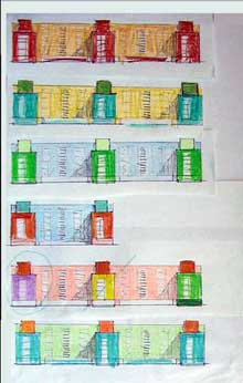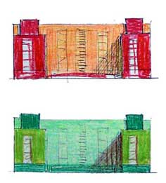 Se nalguns casos concorda que a cor pode assumir um papel efémero, continuando a arquitectura e a cidade a manter a sua presença, noutros casos esta postura não é consensual. Duvida até do que pensaria caso mudassem a cor ao seu projecto da Travessa Sargento AbÃlio. Por outro lado a preocupação de colocar nas fachadas placas com a referência exacta das cores para futuras repinturas, mostra a vontade de que aquele projecto mantenha exactamente aquelas cores e não outras semelhantes. Considera como todos os outros, a opção pelo material como uma opção cromática, acrescentando que “há um refúgio que garante que se corre menos riscos utilizando a cor própria do material, do que escolher uma cor. Escolher uma cor é um projecto. Com a cor consegue-se caracterizar o espaço de uma maneira diferente. Custa o mesmo e já que estamos a falar de coisas pobres, de materiais pobres, com possibilidades limitadas em termos de custo, a cor é um excelente material para issoâ€.