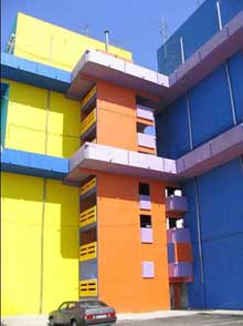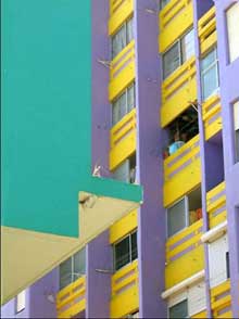 Não sou de todo contra o uso de cor, muito pelo contrário, mas penso que deve ser aplicada observando determinados princÃpios, com um balanço entre cores fortes e mais suaves, com equilÃbrio nas proporções das áreas, estudando os contrastes, as diferentes luminosidades, etc. Uma pequena área de cor, não tem o mesmo impacto que a mesma cor aplicada numa fachada de uma torre.
