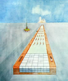 Delirious New York reafirma a dimensão programática da disciplina, conectando de forma improvável os fundamentos da cidade norte-americana à experimentação das vanguardas russas. DNY realiza uma sintese entre a lógica urbana norte-americana e a especulação programática dos construtivistas. Por um lado, a exigência de uma imersão nos desafios da realidade concreta, por outro, a necessidade de uma plataforma teórica que constantemente se confronte com ela. Sintomaticamente, dois projectos conceptuais, incluídos em anexo em DNY, atestam essa inesperada fusão entre os contextos norte-americano e soviético. Se, por um lado, em The City of the Captive Globe de 1972, Koolhaas incorporava “uma primeira exploração intuitiva da arquitectura de Manhattan, desenhada antes da investigação substanciar as suas conjecturas”, por outro, com The Story of the Pool de 1977, o arquitecto presta tributo aos construtivistas russos, propondo alegoricamente uma conexão estrutural entre a Rússia revolucionária e Nova Iorque. Em termos gerais, DNY propõe uma nova perspectiva da história da cidade norte-americana, como berço de uma verdadeira cultura metropolitana, invertendo radicalmente as visões tradicionais da historiografia da cidade. Efectivamente, os teóricos da cidade sempre olharam com condescendência para a urbanização norte-americana, devido ao seu carácter estritamente pragmático e utilitário, considerando-a um derivado inconsistente dos modelos urbanos europeus. Para Koolhaas, estas fraquezas são nem mais nem menos que as suas virtudes. A força oculta da cidade americana, a “metrópole do caos rígido”, estava precisamente na sua interiorização do imprevisível e impensável. A «cultura da congestão» emergia exactamente da «disciplina bidimensional da grelha» que potenciava a «anarquia tridimensional». Neste sentido, as inovações americanas, a saber, a neutralidade da «grelha», a autonomia do «bloco» e a indeterminação do «arranha-céus», são a própria base da condição metropolitana. Em primeiro lugar, a «grelha», manifestando a «superioridade da construção mental sobre a realidade», apresenta-se como um acto fundador desmesurado, impondo sobre o território uma regra unificadora, nada propondo em avanço: “efectivamente, é o mais corajoso acto de previsão da civilização Ocidental: o terreno que divide, desocupado; a população que descreve, conjectural; os edifícios que implanta, fantasmas; as actividades que insere, não existentes.” (3) Em segundo lugar, o «bloco», sem definição morfológica e tipológica prévia além do seu limite perimetral, revela que a sua rigidez e autonomia geométrica é inversamente proporcional à sua indeterminação programática e formal: “Uma vez que os blocos de Manhattan são idênticos e enfaticamente equivalentes na não declarada filosofia da Grelha, a mutação num único lote afecta todos os outros como possibilidade latente: teoricamente, cada bloco pode agora tornar-se um enclave auto-contido do Irresistível Sintético.” (4) Em terceiro lugar, o «arranha-céus», como processo de capitalização por «extrusão», afirma-se como o modelo lógico da «cultura da congestão», revelando a «discrepância entre contentor e conteúdo» através da cisão irreversível entre a «instabilidade programática perpétua» interior e a «auto-monumentalidade» exterior: “O Arranha-Céus é o instrumento de uma nova forma de urbanismo incognoscível. Apesar da sua solidez física, o Arranha-Céus é o grande desestabilizador metropolitano.”(5) No entanto, Koolhaas sabe que os instrumentos base da cidade norte-americana não produzem por si só uma verdadeira realidade metropolitana. Se assim fosse, o seu elogio estender-se-ia não só à história recente de Nova Iorque, mas também à generalidade das metrópoles americanas. Para Koolhaas, algo de extraordinário aconteceu em Manhattan entre 1890 e 1940, fazendo de Nova Iorque um laboratório experimental extremamente produtivo. É aqui que a URSS do período revolucionário se aproxima desse momento feliz de Nova Iorque, partilhando uma vontade e empenho de entrar sem resistências na aventura criativa e produtiva metropolitana e revelando uma abertura aos efeitos inesperados e imprevisíveis das solicitações da realidade concreta.