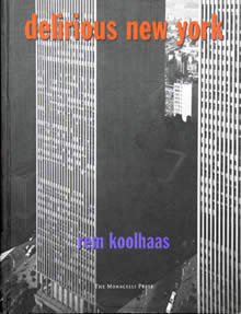 Delirious New York apresenta-se como uma redefinição do que é um livro de arquitectura, compatibilizando de forma original a relação entre a teoria e a prática arquitectónicas. Koolhaas é, de certa forma, o primeiro teórico da pós-modernidade em arquitectura, porque é aquele que para conceber a sua actividade necessita de desfundamentar a sua condição disciplinar. Sintomaticamente, todas as posições críticas contemporâneas de Koolhaas ainda encontravam um lugar de segurança disciplinar no qual basear o seu programa, seja na queda pluralista num relativismo generalizado, seja na inversão para uma negatividade absoluta, seja ainda na defesa intransigente de uma autonomia disciplinar. Em DNY, a assumpção do carácter especulativo da reconstrução histórica de Manhattan, a interiorização da natureza ilusória do projecto arquitectónico moderno perante as forças da modernização e o descentramento do papel do arquitecto no processo de transformação das sociedades não permitem a Koolhaas encontrar um ponto de apoio disciplinar estável e seguro. Se reconstrói exaustivamente a história da modernidade arquitectónica, declara explicitamente o carácter ficcional da sua análise. Se reafirma um novo programa para a arquitectura, salienta as limitações na sua relação com a realidade produtiva. Se reabilita a função do arquitecto na contemporaneidade, revela friamente a sua natureza psicologicamente auto-ilusória. É a partir desta condição disciplinar estruturalmente desfundamentada que Koolhaas, enquanto residia em Nova Iorque trabalhando no seu livro, funda em 1975 o atelier Office for Metropolitan Architecture, revelando a simultaneidade e complementaridade entre a actividade teórica e o trabalho prático. A inclusão em anexo destes primeiros projectos do OMA para Nova Iorque em DNY demonstra-o inequivocamente. Efectivamente, estas propostas de carácter essencialmente conceptual e metafórico resultavam explicitamente da aplicação projectual dos princípios do "Manhattanismo", definindo a sua inequívoca complementaridade: "Esta sequência de projectos arquitectónicos (…) solidifica o Manhattanismo numa doutrina explícita e negoceia a transição da produção arquitectónica inconsciente do Manhattanismo para a fase consciente."(9) É a sua «conclusão ficcional», o «produto provisório do Manhattanismo como doutrina consciente», que, «ao reinvindicar a promessa original de uma condição metropolitana», assume «a tarefa árdua da parte final deste século em lidar abertamente com as pretensões, ambições e possibilidades extravagantes e megalomaníacas da metrópole», fazendo-o «não através de palavras, mas através de uma série de propostas arquitectónicas». A relação entre o período áureo de Nova Iorque e os «projectos americanos» estava na transição da emergência inconsciente de uma doutrina não formulada do primeiro momento para a sua posterior aplicação programática consciente, potenciando a fundação radical de uma nova prática arquitectónica. Neste sentido, a formulação teórica do «Manhattanismo» funciona explicitamente como base programática para o desenvolvimento da prática arquitectónica do OMA.