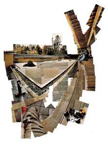 David Hockney lembra que quando observava fotografias, havia algo que não estava, uma ablação que ele veio a mostrar que era a própria representação do tempo. Hockney começa por perseguir uma visão simultânea de vários aspectos circundantes, querendo ter o domínio do espaço de uma forma livre como tinha no desenho ao que ele chamou de “Desenhos com câmara”. Chegou inclusivamente ao ponto de experimentar estas construções com fotografias durante uma conversa entre dois amigos onde havia diferentes expressões dos personagens que eram registados em diferentes momentos e a montagem iria incluir as emoções destes “actores” de forma a equiparar-se a uma narrativa visual.