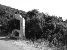 Erraticamente, noutro desvio, encontramos um «a» minúsculo à beira da estrada, na realidade uma peça industrial, ali abandonada. Um «a» verdadeiramente gigante para quem compõe diariamente «a»s, com cerca de 9 pontos para texto corrido. Também ele no meio do nada e à beira da estrada, inesperado naquele espaço, um volume contornável, escalável, imponente e bruto.