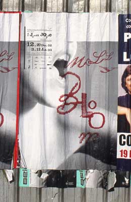 Noutros casos, como no cartaz Boca (7), procurando um certo efeito de estranheza e simultaneamente de proximidade, ampliámos aproximadamente novecentos por cento a imagem de duas bocas tocando-se levemente. Tanto o conteúdo, como a escala da imagem, reforçaram os diálogos estabelecidos entre esta e a cidade nas paredes, tapumes e janelas cimentadas onde o cartaz foi afixado. Aqui, é o contexto que, por oposição, acrescenta significado à imagem.