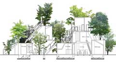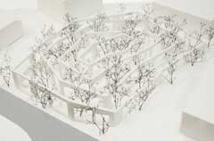 R: Sim, o projecto “House Before House†tem como pressupostos a vida em Tóquio. O interior dos diferentes volumes que compõem a casa assume naturalmente um carácter mais privado. Mas também os pequenos caminhos exteriores, os espaços entre os volumes são usados activamente. Aqui procuro agarrar esse tipo de áreas soltas, nunca encarando apenas o volume fechado como casa. Podemos sentir os volumes e os vazios igualmente, com a mesma intensidade. Ao mesmo tempo, este projecto é influenciado pela minha infância, quando nos perdÃamos na floresta em explorações. No fundo, penso que a sensação de brincar na floresta é muito semelhante à experiência de viver em Tóquio. Foi isso que procurei traduzir com a disposição tridimensional das árvores no projecto.