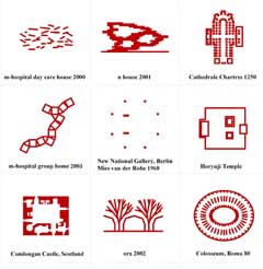 R: Sim, na verdade, fi-lo por prazer. Estou muito interessado na história da arquitectura mas não como historiador. Acho a história da arquitectura fascinante, desde a antiguidade ao tempo presente. É um terreno fértil de inspiração para o meu trabalho. Permite-me fazer um re-entendimento, uma reinterpretação dos seus vários significados. Estive no Egipto a semana passada onde visitei as pirâmides e o templo de Karnak. São de facto impressionantes. Mas um arquitecto tem que encontrar o seu próprio entendimento das pirâmides ou das grandes colunas, do coliseu de Roma ou das casas de Le Corbusier. Neste esquema, a mandala, coloquei em paralelo com os meus projectos a minha reinterpretação de edifÃcios chave que visitei. É uma atitude um pouco audaz, mas permite-me ver as diversas instâncias, esquemas e possibilidades que cada um encerra sem uma carga temporal. Gosto de ver em paralelo estes contrastes entre coisas novas e mais antigas, japonesas e mais ocidentais, para finalmente encontrar nelas algo de muito simples e básico, uma ordem comum, porque a arquitectura, toda ela é feita para o homem. Neste esquema, é possÃvel sintetizar todos esses princÃpios básicos, numa forma primitiva de expressar e representar o mundo. Este tipo de tradução da arquitectura real para a descrição abstracta pode fornecer pistas para a elaboração de novos projectos.