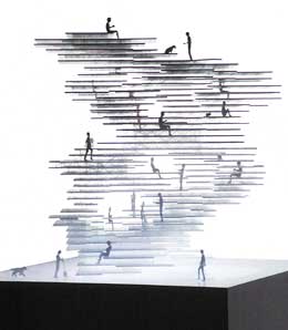R: Penso que é necessário voltar ao primitivo, a uma condição original, e encontrar uma nova relação entre o homem e o ambiente, ou o espaço fÃsico de ocupação do homem. De seguida, quero encontrar uma nova forma, ou relação. Estamos a usar pequenas caixas brancas, elementos minimais mas quero ir além desta forma simples. Encontrar complexidades baseadas no comportamento primitivo, no sentido das intuições do homem, ou do homem com o meio.