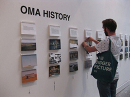 A dez minutos a pé do Arsenale, a exposição continua dentro do Giardini, no Palazzo delle Esposizioni, numa série de salas anónimas, brancas, que variam entre a hiper-dimensão e o recanto escuro. Aqui, Rem Koolhaas (Leão de Ouro desta Bienal) e o OMA têm o protagonismo mais vincado com “Preservation”, uma exposição dentro da exposição que é tanto uma auto-promoção como um diálogo cáustico sobre a preservação na arquitectura, intitulado de “CRONOCAOS”. Explorando a sua “obsessão com o passado”, documentam-se aqui 26 projectos do OMA antes de qualquer intervenção, ao mesmo tempo que Koolhaas expõe toda a sua teoria sobre a preservação — “invenção ocidental” — que a cada ano ganha “escala e importância”. Infelizmente, o bombardeamento de informação é tal, e a sua apresentação gráfica tão pobre, que é difícil reter alguma coisa deste monólogo. Koolhaas soa distante, hiper-académico, conhecedor absoluto; e, por isso mesmo, repele em vez de aproximar.