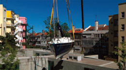 “Untitled/Sem Título”, de João Onofre, centra-se numa aparente tarefa impossível — enfiar um veleiro de 9 metros na piscina da casa de Bak Gordon, que, entalada num esconso do bairro de Sta. Isabel, está rodeada de prédios altos. Onofre filma o barco obsessivamente, criando suspense no espectador. No entanto, maravilhado com a grua que transporta o barco pelos ares, Onofre deixa a casa — e mesmo o pátio, em torno do qual esta habitação revolve — para segundo plano, surgindo apenas no minuto final do seu opus silencioso.