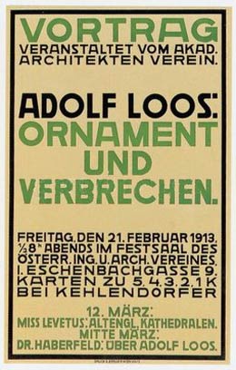[12] Adolf Loos, “Arquitectura” (1910), Ornamento y delito y otros escritos, Editorial GG (1972), p.224.