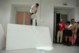 R: O fundraising ocupa-nos metade do tempo de trabalho. Na primeira metade do primeiro ano não tivemos apoios nenhuns, trabalhámos com o nosso dinheiro. Foi o início de actividade. Na segunda parte do ano já recebemos subsídios nos Apoios Pontuais da DGArtes. Este ano, e quando digo este ano refiro-me a Setembro 2009/2010, como os pontuais não abriram não tivemos nenhuma fonte de apoios públicos, apenas um apoio reduzidíssimo da Gulbenkian. Organizámos um leilão de beneficência no Natal, que nos permitiu ter dinheiro suficiente para desenvolver o programa tal como o tínhamos planeado. Quando expomos artistas internacionais fazemos pedidos às embaixadas em Lisboa e às estruturas públicas de apoio nos países de origem. Por exemplo, para realizar a exposição da Pilvi Takala, que é finlandesa, não tivemos apoio da embaixada mas encaminharam-nos para a o Instituto Ibero-Americano da Finlândia que é um instituto público que apoia as relações daquele país com a Península Ibérica e a América Latina. Obtivemos também um apoio da Frame - Finnish Fund for Art Exchange, a instituição finlandesa similar à Direcção-Geral das Artes. Sempre que expomos artistas internacionais torna-se mais fácil obter financiamento já que existem mais opções para conseguir apoios. Acaba por ser altamente irónico ser mais fácil conseguir dinheiro para trabalhar com artistas internacionais do que para realizar exposições com artistas portugueses.