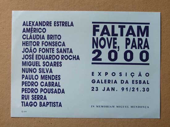 PCS: Os anos 1980 foram uns anos muito ricos, uma época riquíssima, de muitos acontecimentos, de museus, galerias, etc. Por um lado há essa riqueza e há o aparecimento de artistas notáveis em Portugal, e há depois uma geração que aparece a seguir e que está ali sem espaço para expor, porque aquela geração de 1980 é muito forte e é uma geração que ainda continua a trabalhar muito bem. Havia de alguma forma um esforço de encontrar espaços e tentar mostrar trabalho. Nessa altura não fui só eu que comissariei exposições, toda a “minha geração” fez exposições: o Alexandre Estrela, o Rui Toscano, o Paulo Mendes, o Carlos Vidal... Houve tanta gente... Também tivémos a ZDB que nos ajudou imenso, e no Porto tivémos o Artemosferas e o Maus Hábitos. Estes sítios no Porto e em Lisboa foram muito importantes para nos ajudaram a fazer esse trabalho. A geração de 90 não foi proposta – foi imposta.