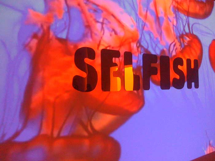 LV: Esta última exposição, Unconditionally, começa com a projecção Selfish. É a Imagem a reflectir sobre si própria?