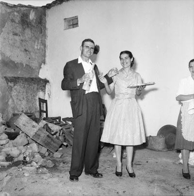 RP: No Verão de 2010, quando estava naquele processo de expiação da tentação materialista que contei, telefonou-me uma amiga a pedir-me uma opinião. Tinha em casa uma caixa com milhares de negativos, neste caso do pai, e me pergunta-me o que podia fazer com aquilo. Fui ver a caixa e fiquei impressionado: eram muitos, em medio formato e tinham muito bom ar. Naquele impulso de aceitar o que o destino me estava a oferecer, fui logo buscar um scanner de negativos e tratamos de começar a digitalizar aquilo tudo. Para testar o scanner acabado de comprar, peguei num negativo ao acaso e apareceu-me uma imagem de uma saída de um casamento à porta de uma igreja. O pai da minha amiga foi fotógrafo numa povoação pequena no Alentejo. A imagem scannada era um clássico de fotografias de casamento, com os noivos orgulhosos a saírem da igreja os convidados à volta - dava para perceber de imediato que se tratava de pessoas humildes a fazer um certo esforço de compostura - e de repente apercebo-me que algumas delas não têm sapatos! Fiquei imediatamente interessado em ver as outras 4 mil imagens! Acontece que o António Saragoça tem uma imensidão de fotografias que contextualizadas são de um valor extremo. Desde logo, por causa da época da maior parte das fotografias: inicio dos 60. Na altura ele era um jovem que percebeu a oportunidade de ganhar algum dinheiro tirando fotografias tipo passe, porque as pessoas tinham que ir a Évora, que ficava longe, para fazerem uma fotografia. Ele percebeu isso e comprou uma máquina fotográfica. Revelava em casa e fazia algum dinheiro. Começou por fazer fotografias tipo passe, mas depois já eram os batizados... e de repente era o fotógrafo informal da vila. O que salta à vista nas imagens é uma qualidade fantástica, que é um nivelamento do olhar: o retratado e o fotógrafo estão no mesmo nível, o olhar para a câmara é o de quem conhece aquela pessoa, vive com ela. Não são fotos de familiares, é toda a aldeia. Há uma coisa muito franca, as pessoas não arrumam nada, não fazem uma pose, não escondem a sua vida. É um trabalho duríssimo, por um lado, e também muito genuíno. Como eu vejo, o fotógrafo não tinha nessas fotografias um ponto de vista superior, como grande parte da fotografia documental que é um pouco “Vamos documentar a vida animal”. Isso impressionou-me e entusiasmou-me bastante. Há um interesse sociológico que se pode ver nessas imagens, mas também, para mim, mais importante ainda, um humor e um olhar não só cândido, mas com uma graça que é muito rara de encontrar. Durante muito tempo quis reservar o António Saragoça para fazer uma coisa em grande, porque achava que ele merecia. E poderia ser um projecto interessante, com a devida contextualização. Talvez um livro, até. Mas não chegou a acontecer. Ainda. E agora que a Pickpocket vai encerrar um ciclo de vida, faz todo o sentido terminar com este trabalho que mostra um Portugal pobrete mas alegrete, e também num gesto a la Vivian Maier, com a mala que deu um empurrão para a criação da Pickpocket.