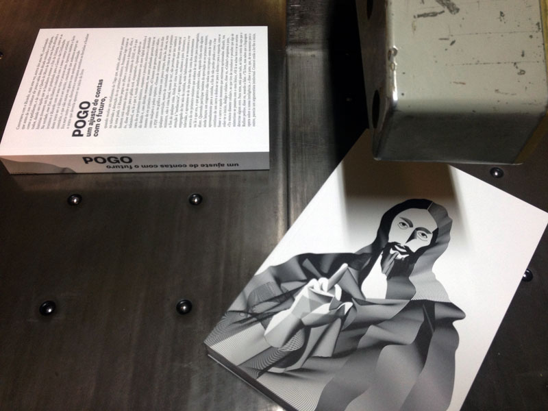 Voltando ao livro. Acho que é orgânico e vivo, sim. Creio que isso se deve ao nosso ecletismo e ao trabalho gráfico feito pelo Pedro Rufino. Vivemos uma época estúpida que quer arquivar de vez o arquivo e nós damos vida ao arquivo com a ideia que tivemos por exemplo de pedir a autores e artistas mais novos que já são do Pogo que trabalhassem em cima de imagens do passado, dando-lhes outras releituras e possibilidades. É um calhamaço de quase 500 páginas e arremessado à cabeça de alguém até pode matar (risos).
