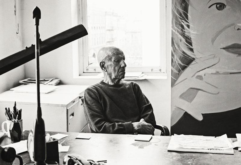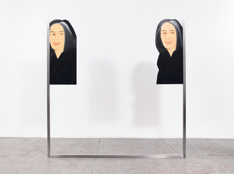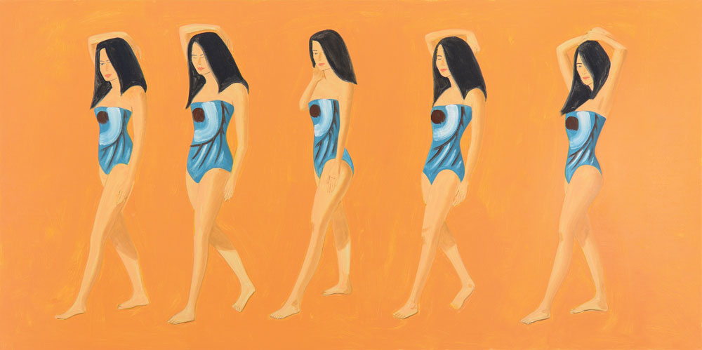 Uma noite, em Fevereiro passado, o artista Alex Katz realizou uma pequena reunião informal no seu estúdio no SoHo, exibindo uma série de pinturas recentes. Entre elas estava uma paisagem monumental, azul, cinza e branca com árvores invernosas. Outra era um retrato aproximado de uma mulher de camisa preta, a sua imagem repetida cinco vezes – não no modo de impressão pop com uma duplicação infinita, mas num formato de ecrã dividido do cinema New Wave em momentos de mudança, íntimos. (Havia também uma particularmente atraente pintura de pequenas dimensões de um cão pastor na entrada.) O estúdio de Katz, para onde se mudou no final dos anos 60, é um dos raros remanescentes espaços artísticos de trabalho ao vivo que ainda existem no bairro – não foi amputado ou remodelado ou inundado por designers de interiores; é apenas este encantador e quente sótão com piso de linóleo, que ocupa a sua secção estabelecida no edifício. Por outras palavras, parece mais um quarto real porque não foi obsessivamente pensado ou reconsiderado ou diminuído por modas passageiras. O trabalho de Katz não é assim tão diferente disto.