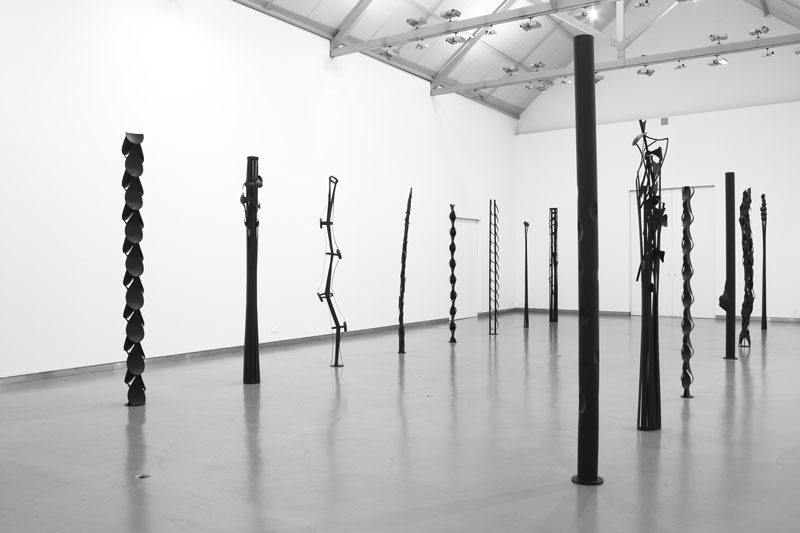 Custa-me muito fazer só uma escultura, normalmente interesso-me por expandir os seus limites e conhecer todas as suas possibilidades e variações. Isso cria “famílias de esculturas”. Sempre vi as minhas esculturas agrupadas em famílias, gosto muito dessa ideia. Penso que, nesta exposição, existem várias famílias simultâneas e faltam duas esculturas num dos alinhamentos. Esta é uma exposição sobre a despedida, sobre a morte, a partida.