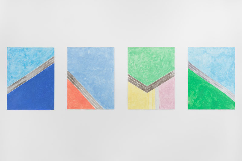 Na série Meridiano Pacífico, as 3 linhas vêm sempre antes do resto, porque é a partir delas que tudo surge, a partir da sua constância, repetição e rigidez subtil. A partir do momento em que essa máquina repetitiva está em andamento, também me interessa que essa extracção emotiva seja de algo que eu ainda desconheço. O que tento a partir daí é não fazer, tentar ao máximo não criar, produzindo pinturas que já existiam; é mais um truque… Queria que o nome remetesse para vários significados ou estados e que essa polissemia estivesse presente na exposição; queria que o público se sentisse num lugar familiar e confortável, mas que ao mesmo tempo levantasse questões (sendo que as menos óbvias serão também as mais interessantes). A mais óbvia é a questão do figurativo/abstracto, que foi também a que levantou mais sobrancelhas, o que de certo modo era o objectivo. Existe aqui uma colisão de perspectivas, na ideia de que a arte deve obedecer a um "desígnio superior", em contraste com o plano das coisas mundanas (dos objectos plásticos, por exemplo). Entendo que se possam ferir algumas sensibilidades ao vê-las todas no mesmo espaço. Existe uma clara tentativa de conciliar os dois mundos e não vejo nada de absurdo na interacção entre estas duas perspectivas, pois creio que o verdadeiro absurdo é partir do principio que se opõem uma à outra.