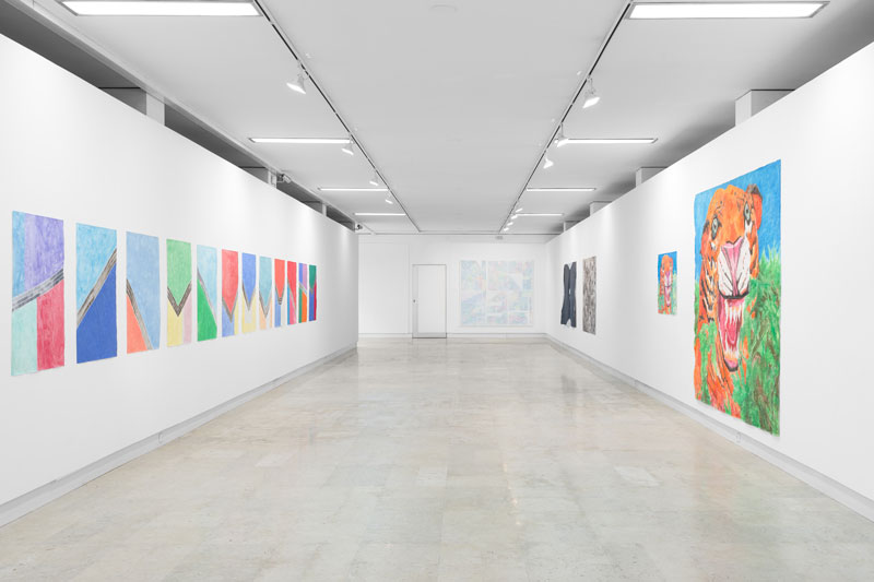 VPF: Na exposição "Meridiano Pacífico" mostras um interesse particular por pinturas a gouache sobre papel esquisso que representam simultaneamente padrões de tecidos e pintura abstrata. Prestas uma atenção especial às formas coloridas como que um retorno a África e pintas tigres com algum exotismo... É o teu carácter tropical a manifestar-se nestas pinturas?