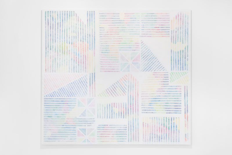 LV: A fragilidade do papel vegetal e a naturalidade do traço podem à primeira vista destoar da abstracção serial, no entanto, tal como o título pressupõe, há aqui uma junção de um lado matemático – meridiano – com um estado sensível – pacífico. Concordas?